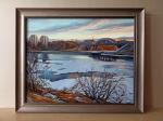 Первые заморозки. Лед сковывает реку, но солнечные лучи на закате дарят еще свое тепло.