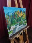 Яркий настроенческий этюд, сделанный осенним октябрьским днем в один из выходных в Марьинском парке в Москве. Листва уже приобрела местами желто-золотой оттенок. Но листья только начали опадать, и осень радует глаз своими необыкновенными красками.