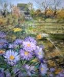 Пейзаж "Циннии" написан в 2021г, грунтованный картон, масло.