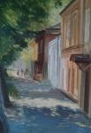 Городской пейзаж "Большая Горная" написан в 2025г, грунтованный картон, масло.