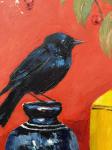 Ключевые слова: интерьерная картина современное искусство реализм контраст красный фон лимоны птица рябина масло на холсте натюрморт