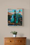 Это интерьерная дофаминовая картина: она наполняет пространство счастьем, лёгкостью и радостью благодаря смелой цветовой палитре (ярко-зелёный, голубой, аквамарин), необычным формам и неожиданным деталям. Картина идеально подойдет для современных домов, стильных интерьеров, детских комнат и креативных пространств. Она станет отличным подарком для любителей русского фольклора, коллекционеров, почитателей наивного искусства и ценителей уникальных авторских работ.