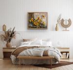 Тёплая охристо-золотистая палитра создаёт ощущение света и спокойствия. Картина наполняет пространство радостью, солнечной энергией и внутренним равновесием.