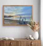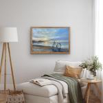 В этой картине я решила запечатлеть именно такой момент — велосипед, оставленный у моря, мягкий свет рассвета, отражающийся в воде, и первые лучи, касающиеся песка.