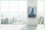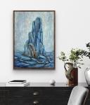 Работа органично смотрится в современных интерьерах — в кабинете, гостиной, рабочем пространстве или студии. Она хорошо вписывается в минималистичные, индустриальные и архитектурные интерьеры, добавляя им глубину и ощущение опоры. Картина не перегружает пространство, но формирует устойчивый центр притяжения взгляда.