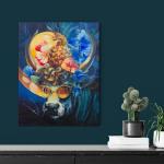 Эта акриловая картина размером 4050 см представляет собой смелую, творческую и яркую интерпретацию знака зодиака Телец. Работа, выполненная в фэнтезийно-сюрреалистическом стиле, представляет собой стилизованную голову быка, наполненную юмором, символизмом и тропической энергией. Это произведение искусства станет настоящим подарком для любителей астрологии, коллекционеров произведений искусства и всех, кто вдохновляется яркими цветами и яркими произведениями искусства.