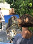 Картина изображает тихий горный пейзаж: величественная скала возвышается над солнечной долиной, где старый каменный дом и тополя создают ощущение уюта и времени, замедлившего свой ход. Теплая, почти золотистая палитра и энергичная, фактурная живопись передают дыхание южного солнца и связь человека с природой.
