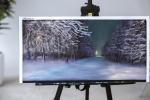 Почувствуйте тихую магию «Зимнего вечера», оригинальной пастельной картины современной художницы Натальи Балашовой. Эта атмосферная зимняя пейзажная картина размером 30 62 см запечатлевает лунный снег, нежные заиндевевшие ветви и светящуюся тропинку, которая погружает зрителя в мирную, созерцательную сцену. Выполненная в мягких пастельных тонах, работа сочетает холодные полуночно-синие оттенки с едва заметными теплыми бликами, создавая современную, но вневременную эстетику. После покупки произведение искусства, по желанию покупателя, может быть профессионально оформлено с использованием паспарту (paspartu), рамы (brame) и музейного стекла для защиты нежной пастельной поверхности (оплачивается дополнительно). Выберите ширину паспарту от 1 до 8 см (светлые или темные тона) и ширину рамы от 1 до 5 см — окончательные размеры в раме варьируются от 34 66 см до 56 88 см. Идеально подходит для гостиных, офисов или тщательно подобранных коллекций. Свяжитесь с нашей галереей, чтобы сделать заказ, запросить примеры оформления или организовать доставку.