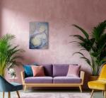 Круговые формы и плавные движения создают ощущение света, текучести и гармонии. Фактура и крупные мазки выполнены руками — это придаёт картине живость, глубину и ощущение импульсивной и свободной энергии. Светлая пастельная палитра с деликатными цветовыми акцентами усиливает чувство уюта и спокойствия.