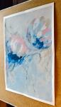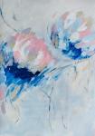 Композиция навеяна цветочными формами и построена на сочетании мягких розовых, голубых и насыщенных синих мазков. Свободная манера письма и полупрозрачные слои создают ощущение легкости и движения.