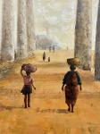Картина, переносящая зрителя на Мадагаскар - далекий африканский остров в Индийском океане: палящее солнце, знаменитая аллея баобабов и уходящая вдаль дорога, по которой спокойно, неторопливо идет африканская женщина с дочкой. Мастихином передана плотная фактура коры вековых деревьев и жара: густые мазки создают рельефные блики и тень, ощущение песчаной пыли и колеблющегося воздуха. Картина приглашает замедлиться и почувствовать неспешный ритм жизни под африканским небом.