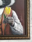 Харизматичный енот-джентльмен с бокалом вина и желтым тюльпаном.
