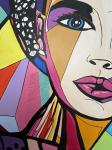 Ключевые слова: сюрреализм абстрактный поп-арт сочная геометрия черные линии дофамин голубой поп-арт черный синий красный желтый яркая линии яркие цвета лицо девушка