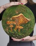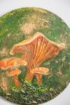 Грибы "Лисички" - круглое интерьерные панно с текстурой и объемом. Работа участвовала в Уральском конкурсе "Сокровища Рифея-16" 2025 г и награждена дипломом "лауреата II степени". На задней стороне панно есть подвес для крепления на стену.