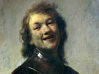Долгое время картина хранилась в частной коллекции в графстве Глостершир (Gloucestershir) на юге Англии. На полотне стоит подпись H.L. Rembrandt. В ряде монографий эта картина фигурирует под названием "Автопортрет молодого Рембрандта в образе смеющегося философа", однако экспертиза, проведенная отцом владельца, выставившего ее на аукцион, определила, что полотно написал не сам Рембрандт, а кто-то из его учеников.