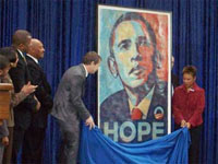 Портрет Барака Обамы, выполненный художником Шепардом Фейри (Shepard Fairey), открыт для всеобщего обозрения в Национальной портретной галерее в Вашингтоне, сообщает DC Examiner. Эта работа была выполнена для предвыборной кампании Обамы, официально вступающего в должность президента США 20 января 2009 года.