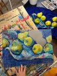 Натюрморт выполнен масляной пастелью.