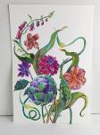 Цветочная композиция с артишоком и стрелками чеснока