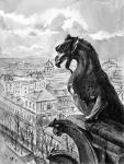 Вид на Париж с крыши Нотер-Дам. Одна из химер, установленная у основания башен собора Парижской Богоматери, это это фантастическое, гротескное существо. Химеры олицетворяют человеческие грехи и силы зла.