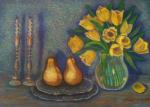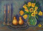 Ключевые слова: Подсвечники, груши, тюльпаны, натюрморт