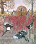 К осени у пары сорок, что живут рядом с моей дачей подрастает многочисленное потомство. Какое-то время молодняк держится стайкой, поближе к родительскому гнезду. Но к зиме – уже каждый сам за себя.
