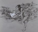 Ещё немного графики. Рисунок девушки у стола с открытым ноутбуком в потоке, как бы сказать, всякого разного.