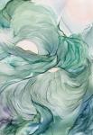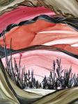 Работа «Над пропастью. Во ржи» выполнена спиртовыми чернилами, детали дополнены линерами. Она передает красоту и энергетику от созерцания природы, когда время будто замирает и растворяется.