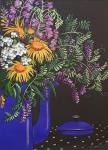 На картине изображён букет полевых цветов на чёрном фоне.