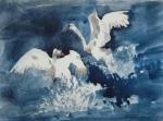 Работа акварелью с двумя лебедями подойдет для подарка влюбленной паре.Акварель была нарисована по мастер классу К.Стехова.