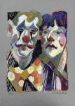 Графическая работа масляной пастелью на профессиональной бумаге для пастели, размер 42х60 см. Без оформления, в пакете/пленке для хранения. Эта картина началась, как работа про игрушки, которые стоят на полке. Но в процессе работы, я подумала, что это очень похоже на банки, которые использует каждая хозяйка на своей кухне и они и правда немножко живые, ведь мы контактируем с ними каждый день, храним в них еду. Но когда я закончила работу, вся эта картина мне навеяла мысли о клоунах, цирке и акробатах. И похоже, что эта первая картина из новой серии про цирк.