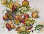 Те же прекрасные цветы, что на предыдущей картине в корзинке, но другой фон. Цветы выглядят более энергично. Предыдущая работа для нежности, а эта для радости.