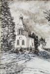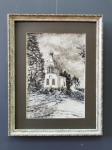 Картина выполнена на бумаге в технике тушь-перо, оформлена в багет.