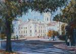 Картина с видом на часть ансамбля Смольного монастыря ранней осенью