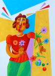 Ключевые слова: цветной фон, голубой желтый, красный цветы, девушка