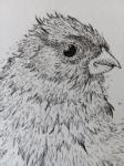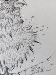 Рисунок мокрого взъерошенного воробья.Птичка сидит на ветке,отряхиваясь от воды на перьях.Мелкие брызги разлетаются в разные стороны.Рисунок выполнен гелевой ручкой, монохромно в черно -белых тонах.Скурпулезно прорисованы перышки и другие мелкие детали воробья.