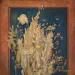 Красивая подача сухого букета. Уставшее золото на глубоком синем. Работа завораживает, не надоедает. Иллюзия оригинала.