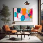 Окунитесь в яркий мир абстрактного искусства с помощью этой увлекательной картины, изображающей разноцветные круги на синем фоне. Это уникальное произведение искусства представляет собой динамичное сочетание розовых и оранжевых оттенков, подсвеченных мягкими, теплыми тонами вечернего освещения. Вдохновленная стилем Дженни Сэвилл, картина демонстрирует крупные геометрические формы, которые создают поразительный визуальный эффект.