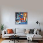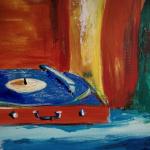 Картина написана на холсте акрилом, переносит зрителя в атмосферу уютного вечера, наполненного светом ламп, мягкими тенями и музыкой, которая звучит с виниловой пластинки. Это современная ода тихим радостям жизни, объединяющая визуальные, звуковые и чувственные впечатления в единую гармоничную сцену.