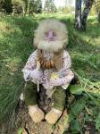 Сидит сам, внутри утяжелитель. Одежда съемная, из натуральных тканей. Лапти не снимаются.