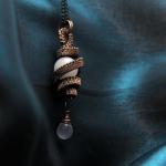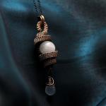 Подвеска из меди, запатинированной и отполированной вручную, и розового кварца поделочной и полудрагоценной огранки.