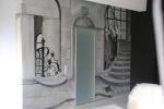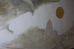Роспись для спальни молодой девушки: мотив бальной залы - двери - взяли с туристической фотографии одного из Санкт-Петербургских дворцов, пофантазировали, переместили в сад, заселили сад птичками… Ориентировочная стоимость за метр квадратный.