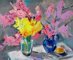 Голубь Анна. Букет в белой вазе и голубая лошадка