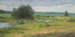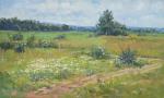 Русский пейзаж,лето,купить картину маслом,дали,пейзаж с прудом, солнечный день.