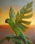 Ключевые слова: попугаи яркие птицы экзотика тропический сад лето листья пальмы зелень бананы пальма тропики современные сюрреалисты живопись маслом живопись картины искусство арт современные художники креатив лиза рэй сюрреализм