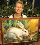 Очаровательный кролик принесет теплоту и уют в Ваш дом и будет великолепным подарком для друзей, родных и близких. Работа выполнена на холсте маслом.