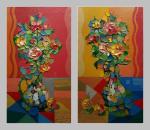 Картина маслом на холсте. Харабадзе Заза. На красном и на желтом (диптих)