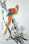Веер с птицей и камелией
