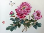 В китайской живописи гибискус символизирует удачу в карьерном росте, а на этой картине еще присутствует один из разнообразных видов зимородка, с характерной черной головой.