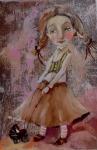 девочка, смешные человечки, коляска, прогулка, наивное искусство