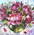 Ключевые слова: букет с пионами, розовые пионы, натюрморт с пионами, пионы в вазе, летний букет, объёмная живопись, живопись мастихином
